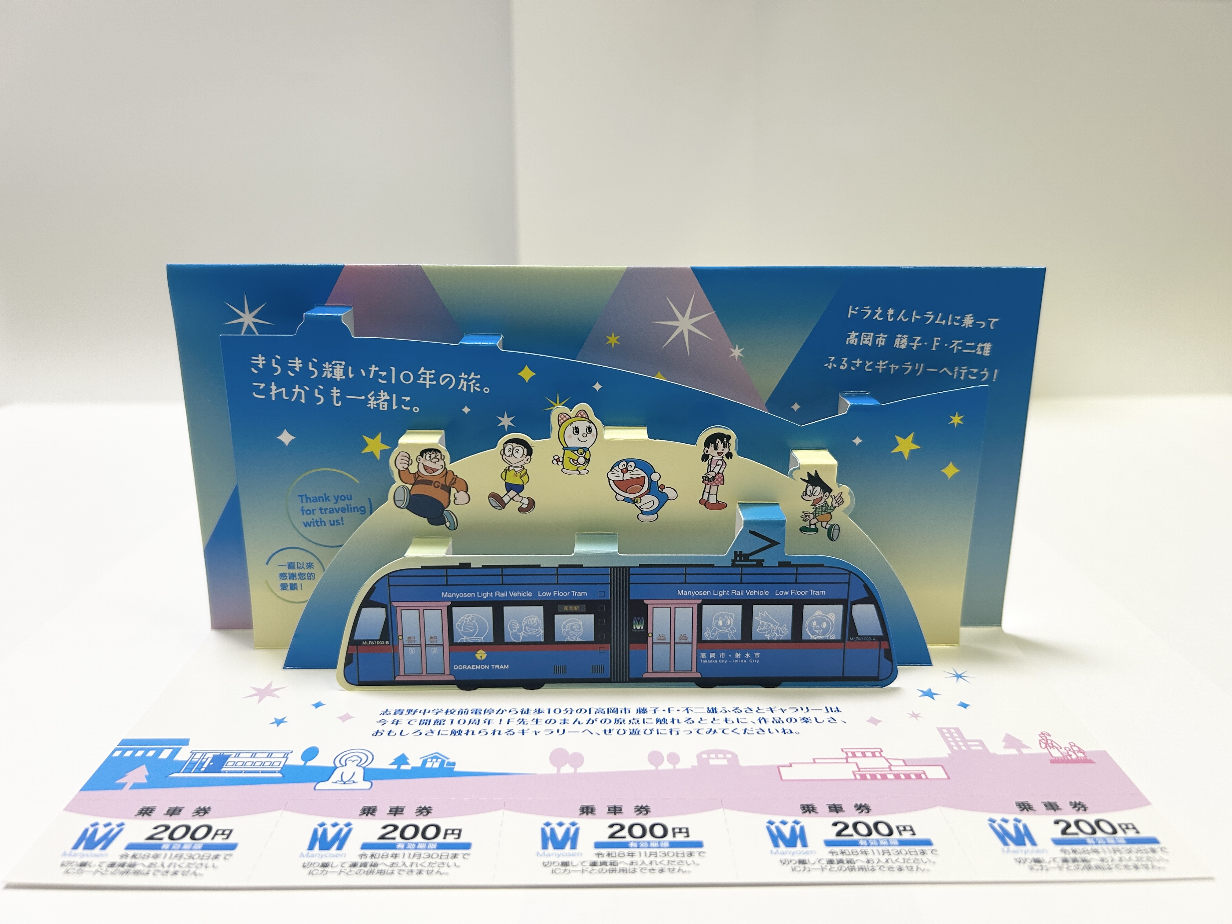 藤子・F・不二雄ふるさとギャラリー開館10周年を記念して、飛び出す仕掛け付き 「ドラえもんトラム記念きっぷ」 を発売いたします!