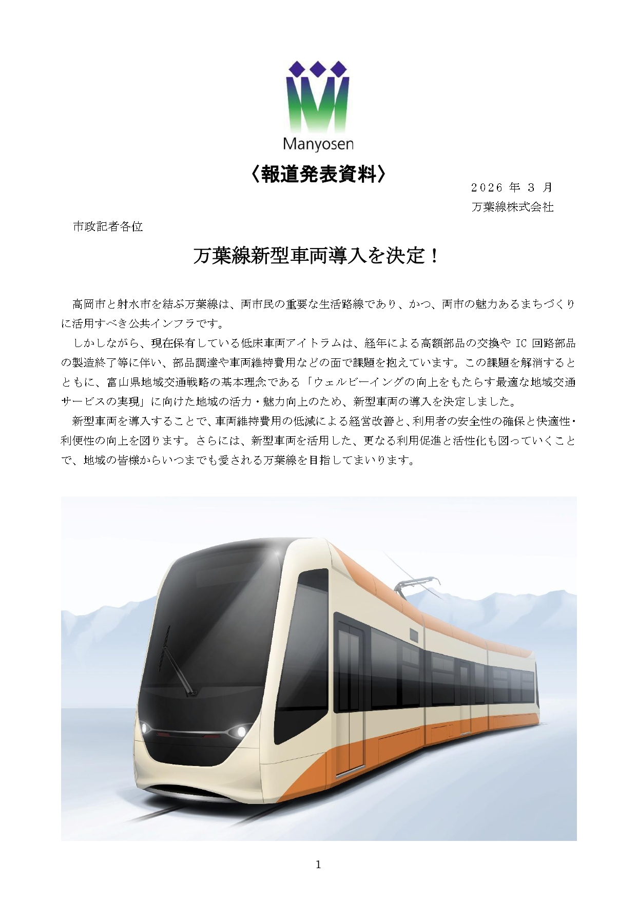 万葉線新型車両導入を決定! | TOPICS